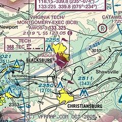 | CTAF/UNICOM: | 123.05 |  | WX AWOS-3: | 133.325 (540-231-4837) |  | ROANOKE APPROACH: | 133.225 |  | ROANOKE DEPARTURE: | 133.225 |  | CLEARANCE DELIVERY: | 124.85 |  | IC: | 133.225 |  | WX AWOS-3 at PSK (13 nm W): | 127.375 (540-674-2731) |  Nearby radio navigation aids