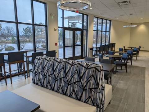 Breakfast seating with couch and tables