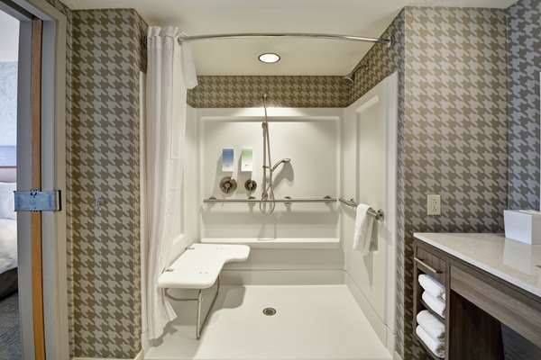 - LOCATED RIGHT ACROSS FROM PORTLAND INTERNATIONAL JETPORT HOME2 SUITES BY HILTON PORTLAND AIRPORT ME IS THE PERFECT PLACE TO REST AFTER A LONG DAY. WHETHER YOU RE HERE FOR BUSINESS OR AN EXTENDED STAY OUR CONVENIENT LOCATION IS JUST OFF I-95 NEAR THE MAINE MALL. more...ATTRACTIONS IN DOWNTOWN PORTLAND MAINE ARE ONLY 15 MINUTES AWAY. OUR STYLISH SPACIOUS SUITES INCLUDE EVERYTHING YOU NEED FOR A COMFORTABLE STAY. PREPARE MEALS IN THE IN-SUITE KITCHEN INCLUDING A FULL-SIZED REFRIGERATOR COOKTOP MICROWAVE AND UTENSILS. RELAX WHILE WATCHING THE 50-INCH HDTV OR WORK COMFORTABLY AT THE DESK WITH ERGONOMIC CHAIR AND FREE WIFI. START YOUR DAY WITH COMPLIMENTARY OATMEAL FRUIT WAFFLES BREAKFAST SANDWICHES AND MORE AT OUR INSPIRED TABLE . WHEN YOU NEED A SNACK VISIT OUR 24-HOUR HOME2 MKT FOR SNACKS BEVERAGES AND SUNDRIES. UNWIND IN THE HEATED INDOOR POOL OR ON THE OUTDOOR PATIO AFTER A LONG DAY OR MULTITASK IN OUR SPIN2 CYCLE FACILITY BY RUNNING A LOAD OF CLOTHES WHILE YOU WORK OUT.