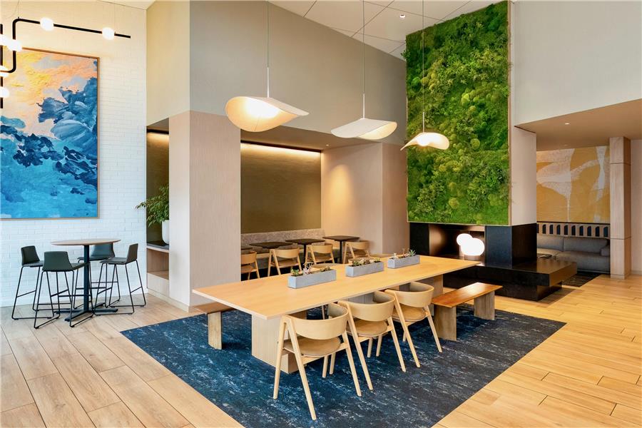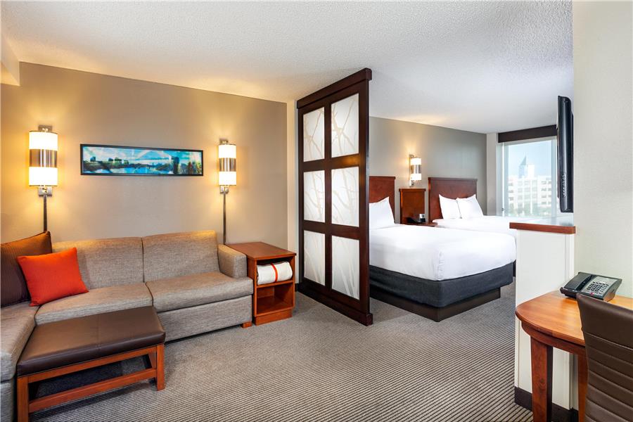 The hotel is a 6-story building with one level of public space and 5 guestroom floors all with standard Hyatt Place Room offerings such as Hyatt grand bed state of the art media and work center with a high-definition 42 inch flat panel TV wet bar Cozy Corner L shaped sofa sleeper. Guest room and more...public areas feature a contemporary decor with stylish furnishings.