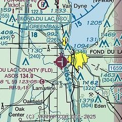 | CTAF/UNICOM: | 123.05 |  | WX ASOS: | 134.0 (920-922-4444) |  | MILWAUKEE APPROACH: | 127.0 |  | MILWAUKEE DEPARTURE: | 127.0 |  | WX ASOS at OSH (13 nm N): | PHONE 920-426-1644 |  Nearby radio navigation aids