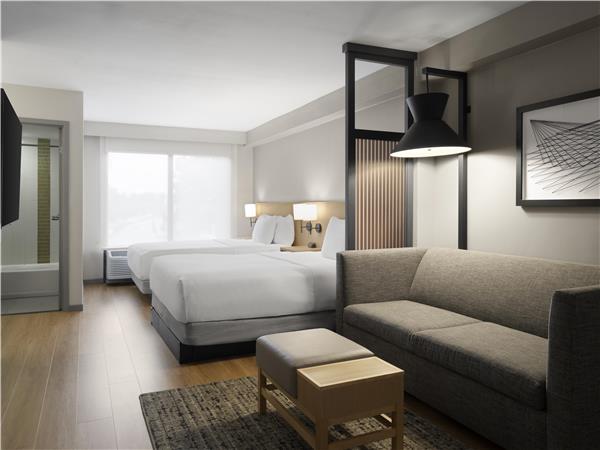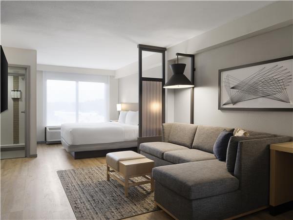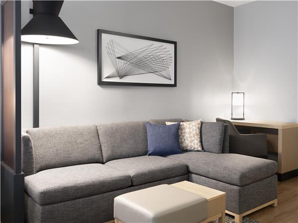 Hyatt Place Topeka offers all the conveniences of home while traveling. Enjoy our spacious suite inspired guestrooms complimentary WIFI complimentary parking Coffee to Cocktails Bar and 24/7 Gallery Menu. Complimentary breakfast. more...Guestrooms feature Hyatt Grand beds 42-inch flat screen HD TVs that easily integrate with laptops work desk a comfortable cozy corner L-shaped sofa-sleeper and wet/dry bar.