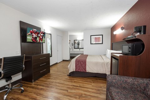 Red Roof Inn Starkville University provides the essentials guests need for a relaxed stay. We offer free Wi-Fi complimentary coffee in the lobby and paid guest laundry. Each guest room includes a flat-screen TV microwave and mini-refrigerator. We are proud to be a pet-friendly hotel so your four-legged companion is always welcome.