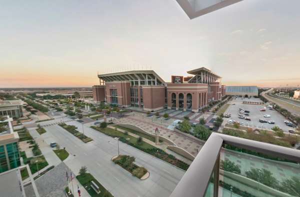 Housed in a striking glass tower across from Kyle Field and near the Memorial Student Center the hotel and conference center provides stunning accommodations to host current and former students and their parents-wedding celebrations-meetings and conferences-Aggie football fans and visitors doing more...business with the university.